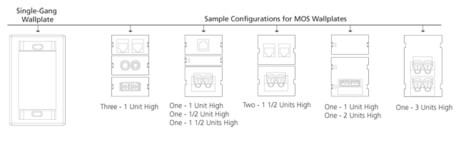 The Multimedia Outlet System consists of surface-mount boxes and single-, dual, and triple-gang wallplates that accept a variety of copper, fiber, and AV modules. Install any combination of connectors including QUICKPORT™ connectors and larger AV modules such as 3-port composite/component RCA, HD-15 connectors and fiber modules.
