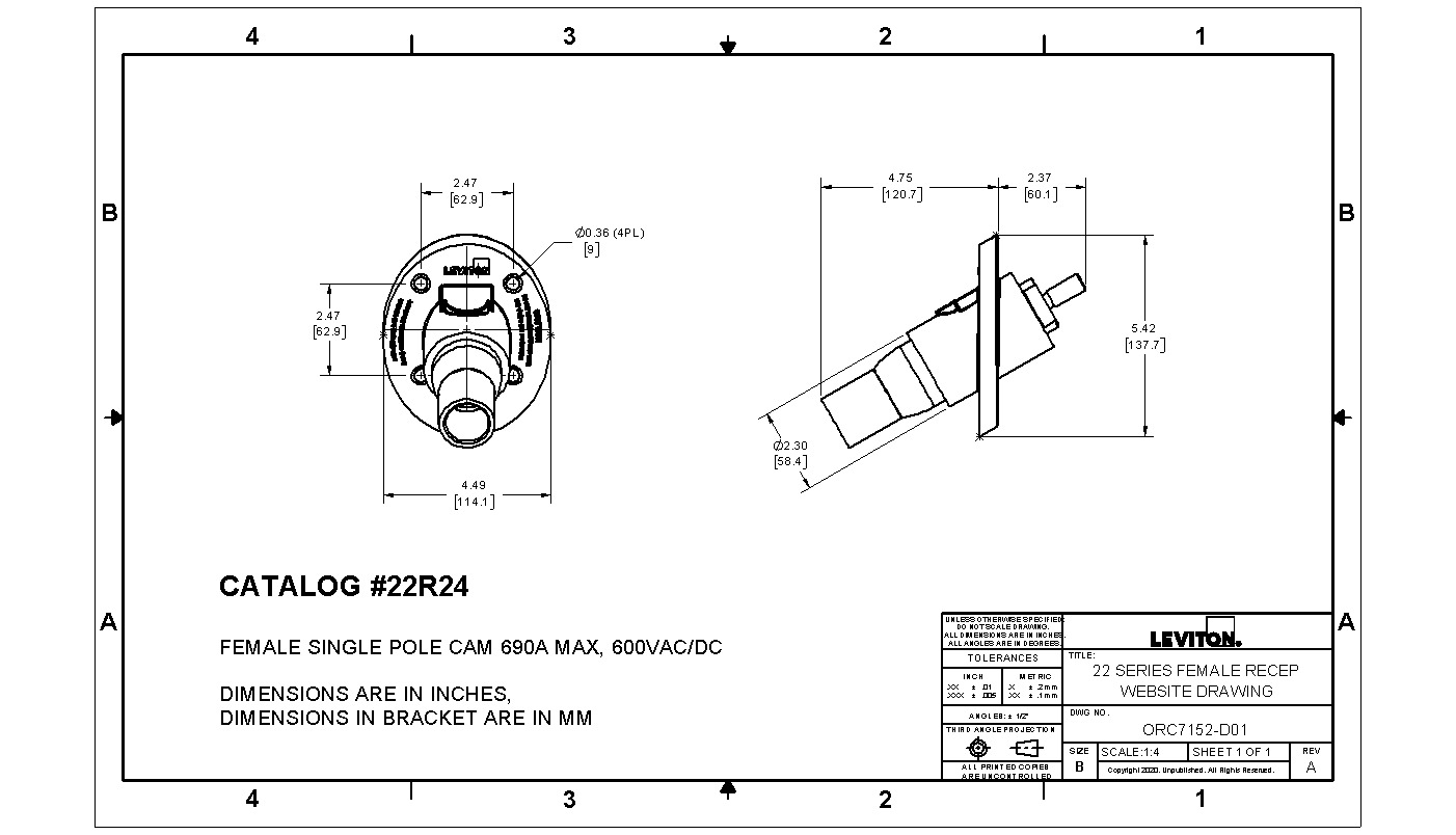 Leviton’s Rhino-Hide Single Pole Cam-Type Connectors supply temporary electrical power for both indoor and outdoor applications. These devices are designed for easy assembly and disassembly, without special tools.
