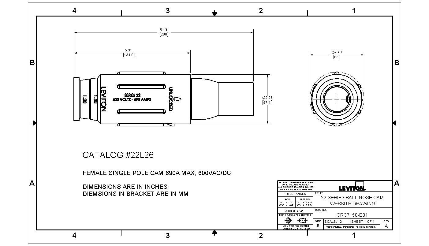 Leviton’s Rhino-Hide Single Pole Cam-Type Connectors supply temporary electrical power for both indoor and outdoor applications. These devices are designed for easy assembly and disassembly, without special tools.