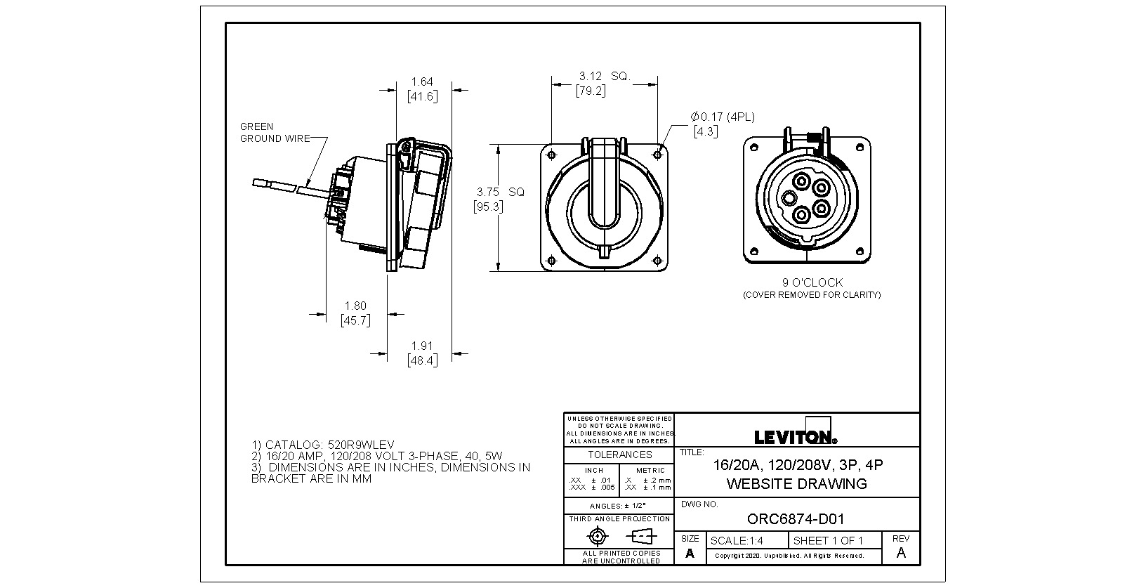 Product Markings : Brand, UL, CE and environmental ratings molded in. Item number, ampacity, voltage, phases, HP, NSF on label. IEC 60309-1, -2 Dual Ratings on separate label.