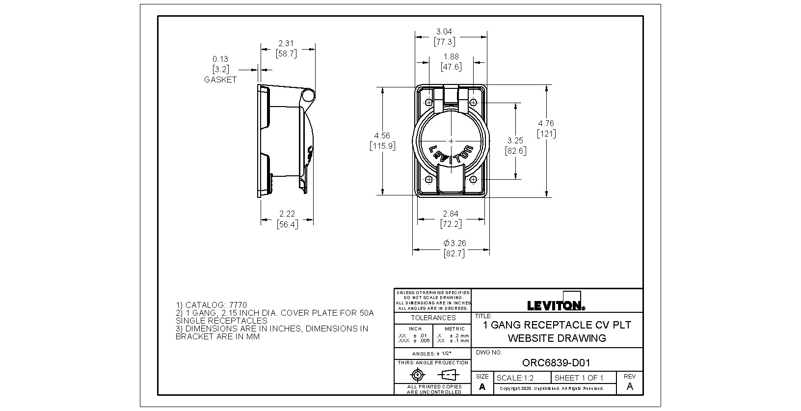 1-Gang Receptacle Cover Plate