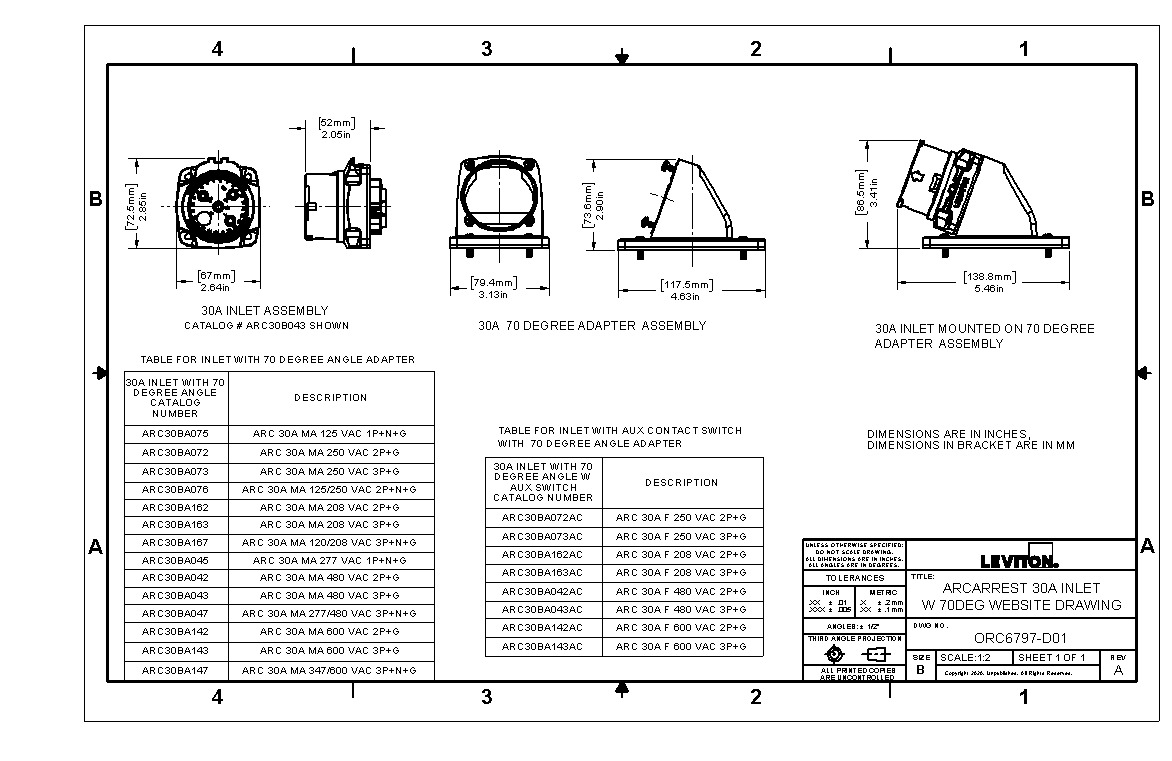 ArcArrest® Switch-Rated Pin & Sleeve Inlet 70-Degree Angle