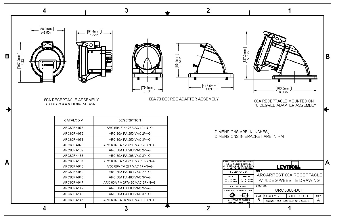 ArcArrest® Switch-Rated Pin & Sleeve Receptacle 70-Degree Angle