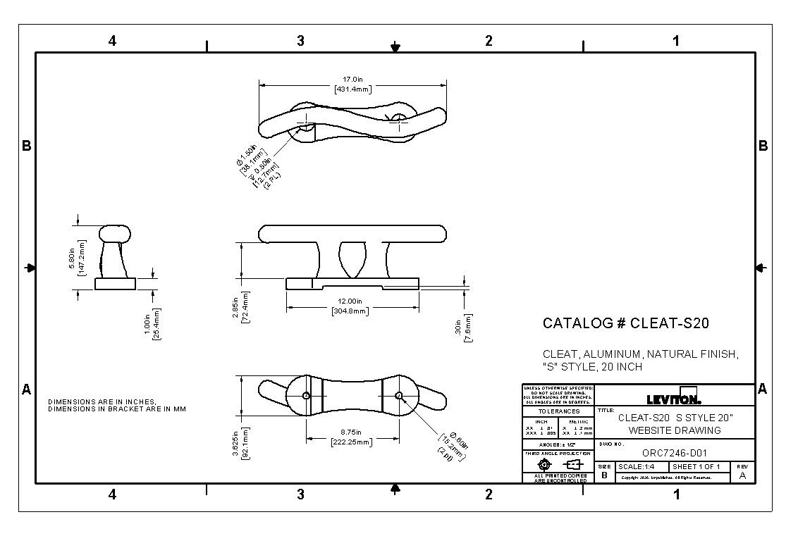Aluminum "S" Boat Cleat, 20-Inch