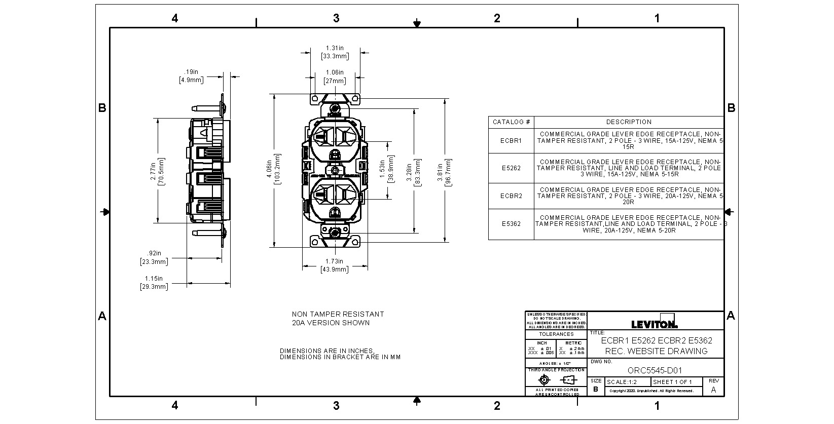 Lever Edge™ 20 Amp 125 Volt Duplex Receptacle/Outlet, Commercial Grade, NEMA 5-20R, Multipack (10)