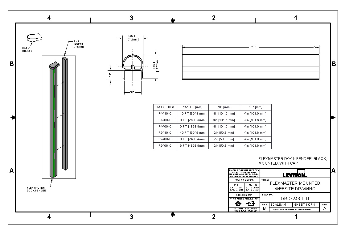 Flexmaster Dock Fender/Boat Bumper, Black, 4x4 Mounted with Cap, 8-Feet