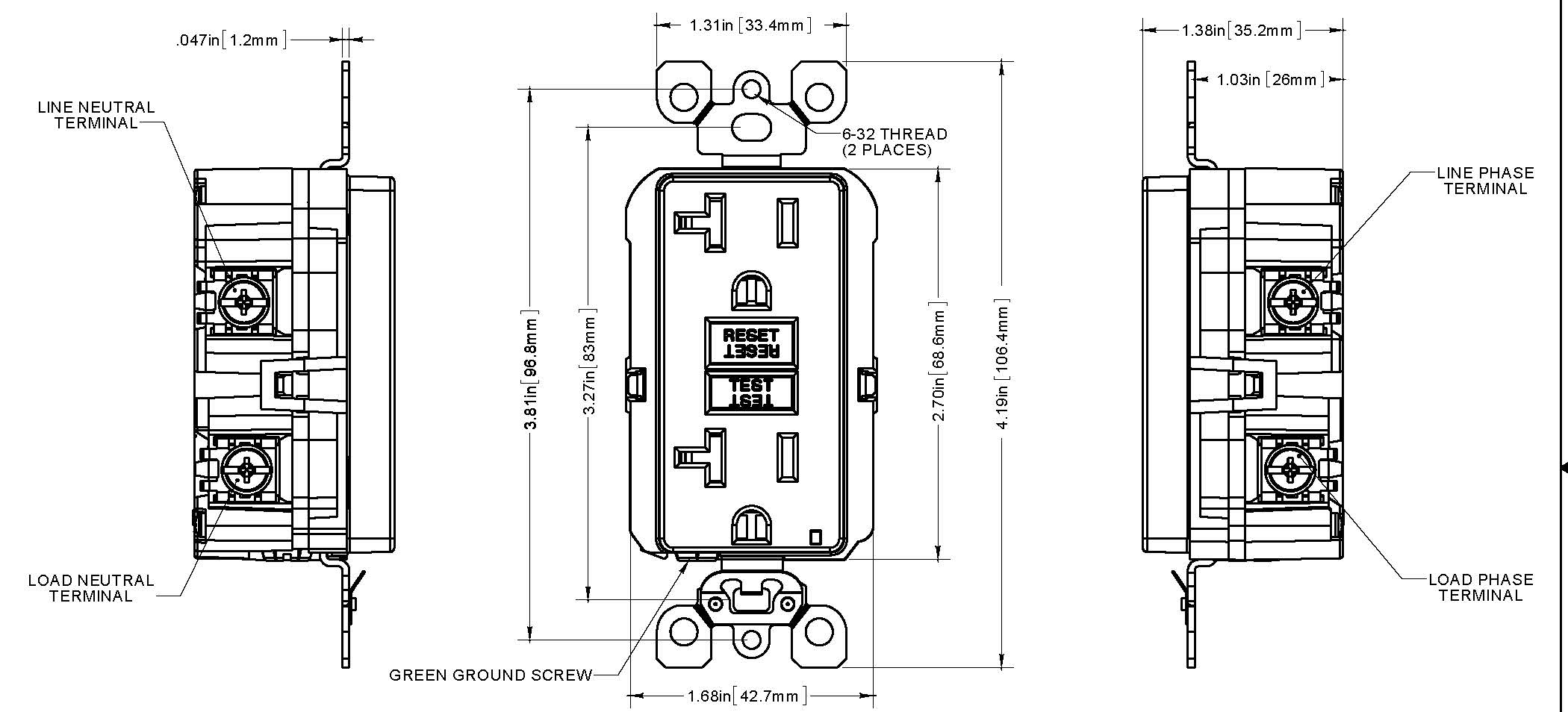 - Patented Lockout Action prevents reset if GFCI is damaged and cannot respond to a ground fault