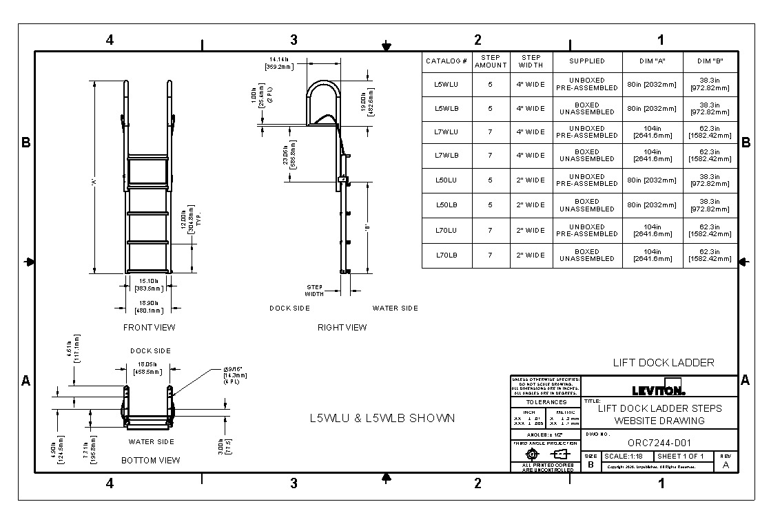 - Deep 12-inch spacing - each step extends the ladder 12 inches down from the dock
